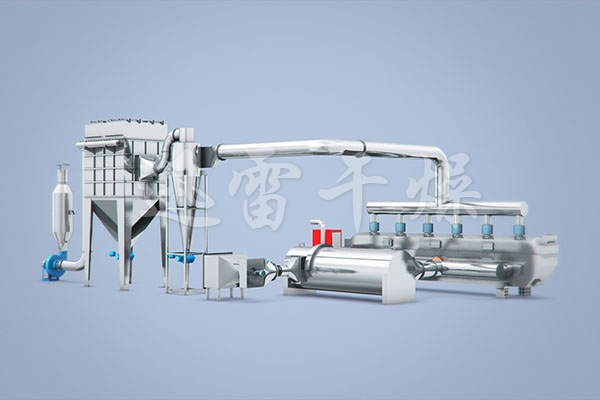 工作原理物料自进料进口进入机内,在振动力作用下,物料沿水平面流化床抛掷,向前连续运动,热风向上穿过流化床同湿物料换热后,湿空气经旋风分离器除尘后由排风1:3排出.干燥物料由排料进口排出。结构示意图动画演示适应物料◎适用于化工、制药、食品···