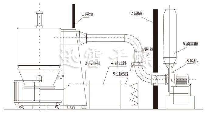 空气经加热净化后,由引风机从下部导入,穿过料斗的孔网板。在工作室内,经搅拌和负压作用形成流态化,水份快速蒸发后随着排气带走,物料快速干燥。